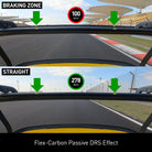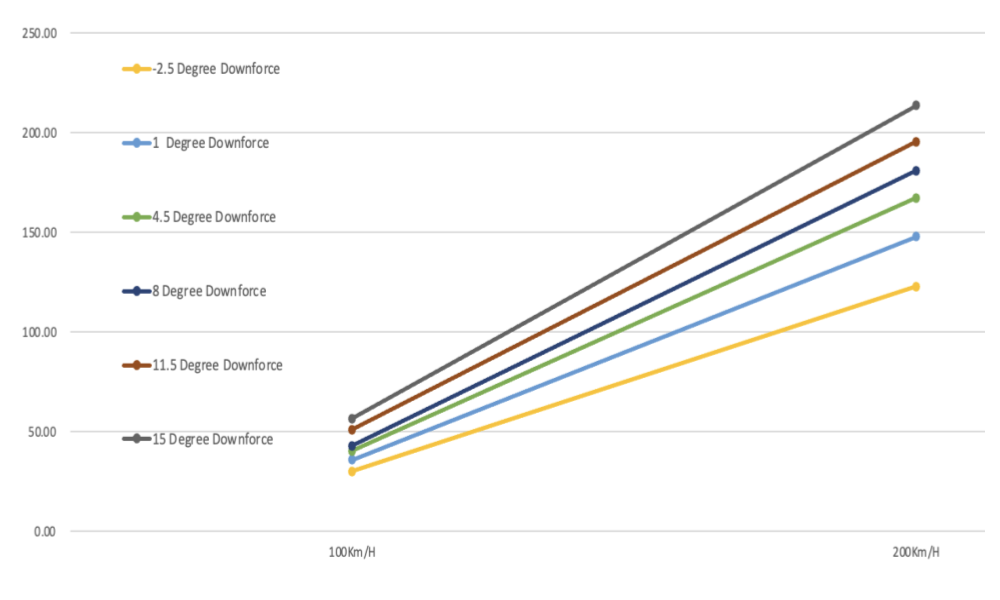 Passive DRS Effect: Our tests on the Shanghai F1 track demonstrates that the DRS-1 wing can passively drop back by ~1.5 degree of AOA at speeds between 150 to 270 km/h, resulting in an 8km/h increase in top speed compared to traditional wings. For the GT4 RS, this improvements translates to a lap time reduction of 0.5 seconds.