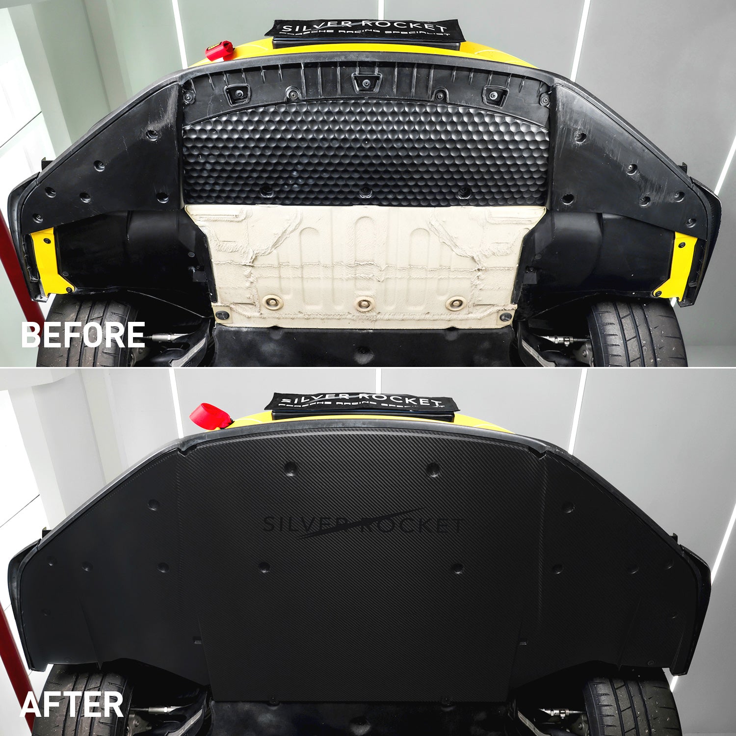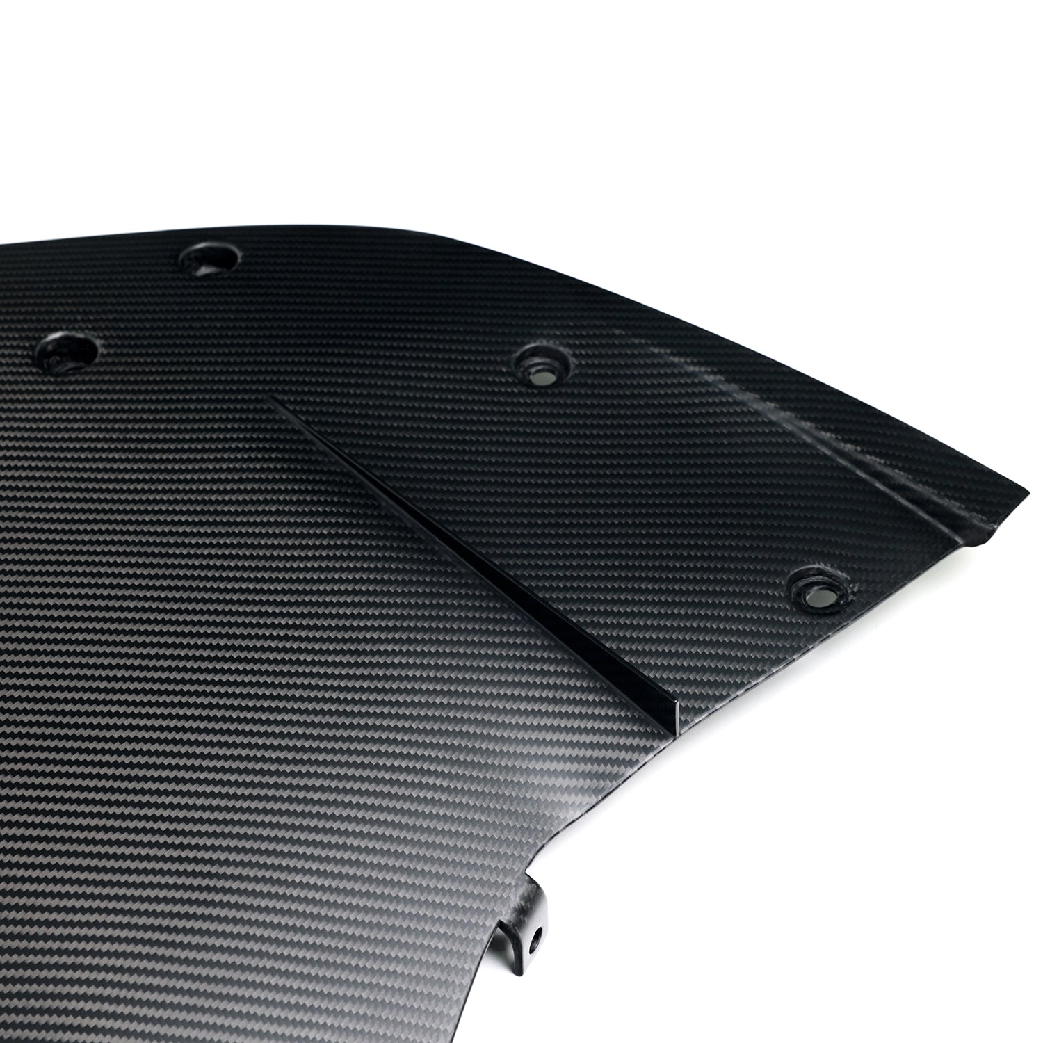 Constructed from high-strength, aerospace-grade dry carbon fiber, the SR Aeroshield boasts a strength that is 4.3 times greater than that of aluminum. It provides exceptional protection for the front OEM underbody aluminum tub.