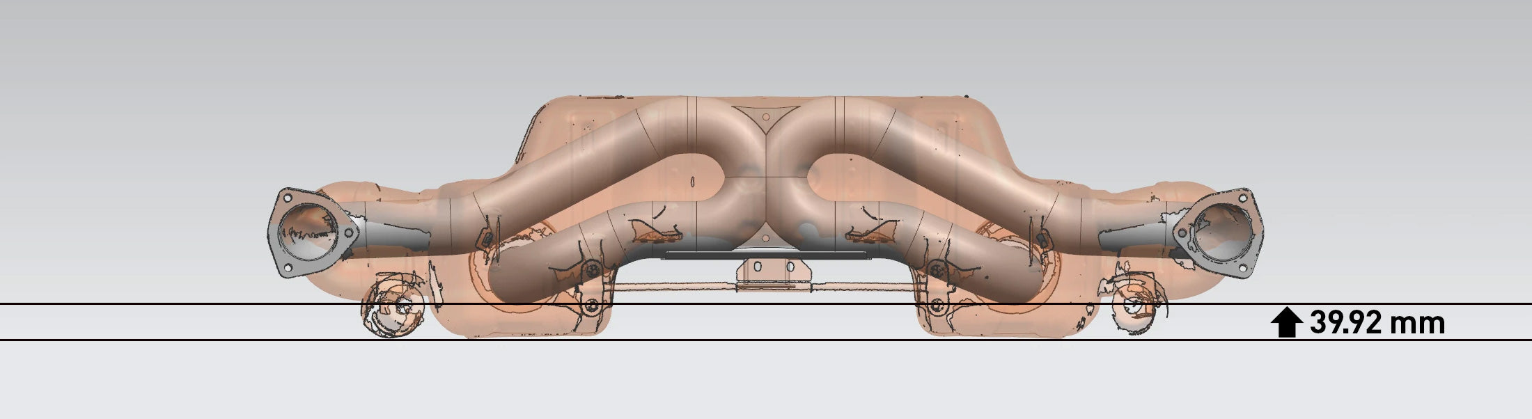 The SR Race Pipe elevated the lowest point of the underbody by 39.92mm, fully flattening the rear floor to provide ample clearance for the upcoming SR high-downforce diffuser.