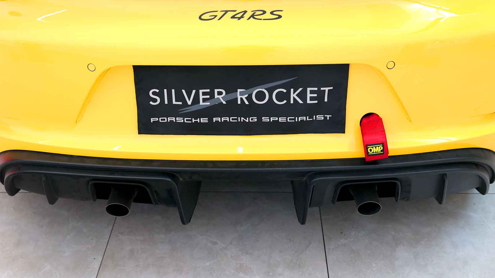 The Porsche GT4 RS factory tailpipe is a direct bolt-on fit to SR Race Pipe. Swap to OEM style in just 2 minutes.