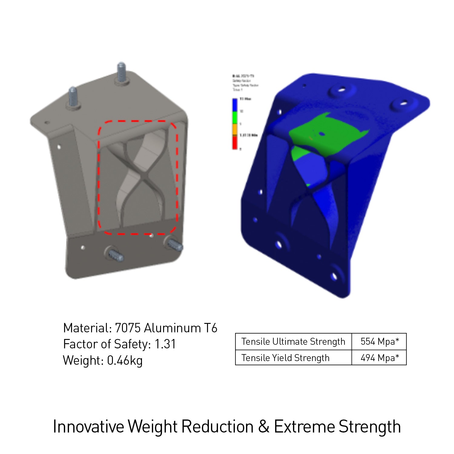 With an innovative lightweight design to cut the weight down to only 460 grams, the SilverRocket Anchor can withstand over 34,612N of force and provides 494 Mpa of Tensile Yield Strength, which is 20%+ more than the Porsche OEM design.