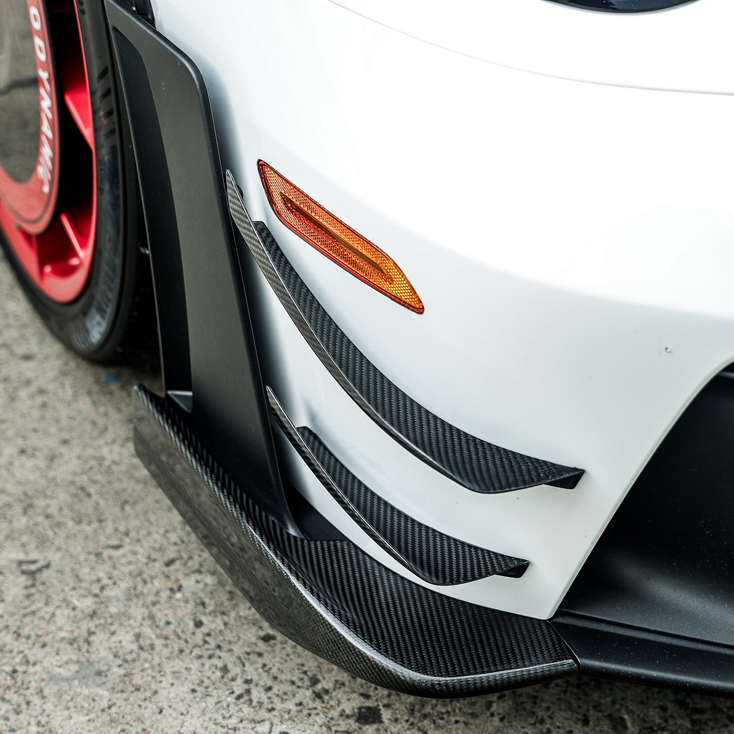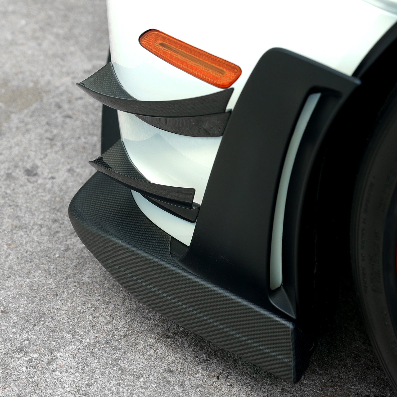 The SilverRocket Dry Carbon Fiber Lower Side Spoiler is developed specifically for 992 GT3 RS, increases front-axle downforce while imparting a distinctly aggressive, race-inspired appearance.